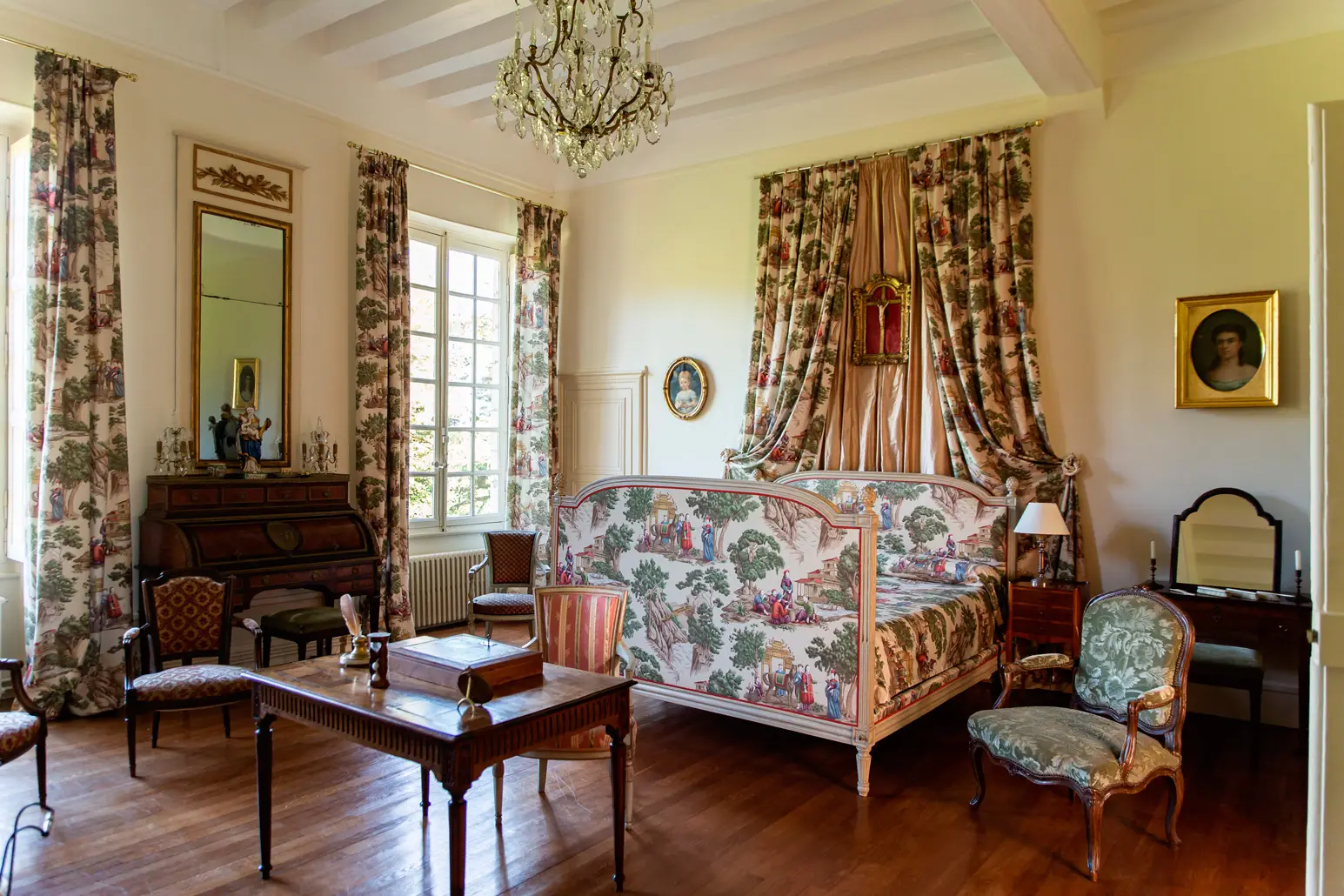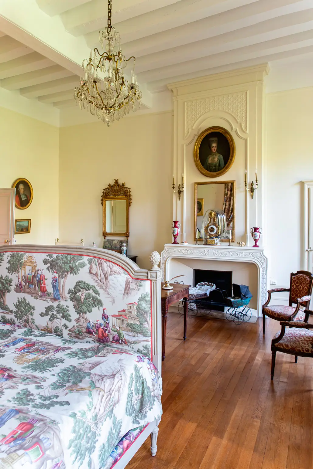 La plus grande chambre du château, et probablement celle que l’on choisi pour son cadre préservé.